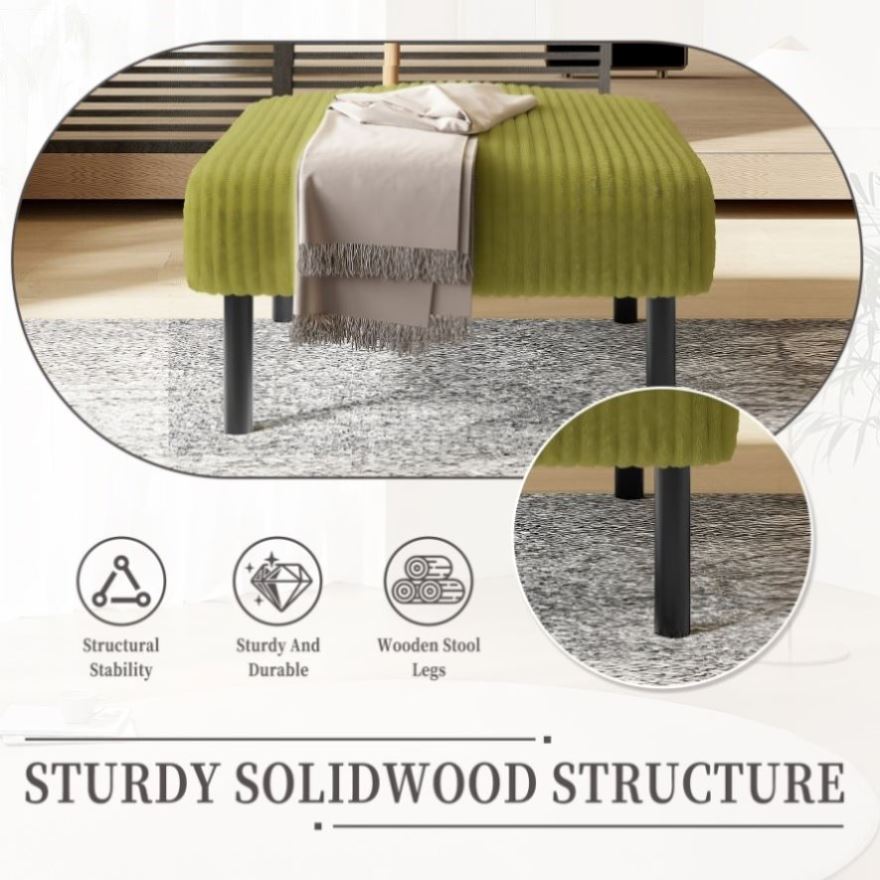 Elegant & DurableThis footstool is equipped with soft corduroy fabric and a sturdy solid wood frame, blending style and durability, adding a touch of elegance to any space while providing comfortable seating options.