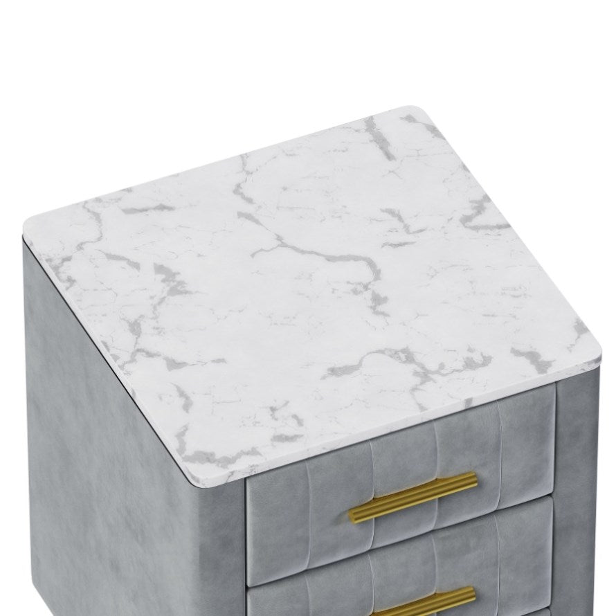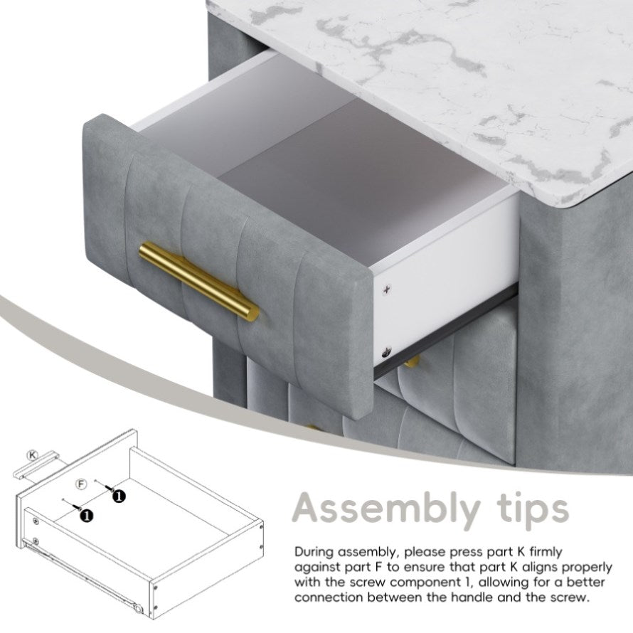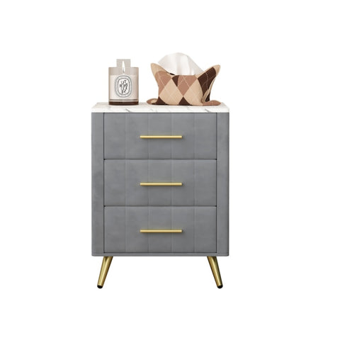 With Marbling Worktop: Except the cabinet is made of velvet, the handles and feet are made of metal, this upholstered nightstand comes with a marbling top panel,which make it looks more elegant.