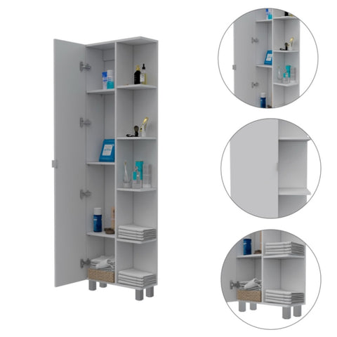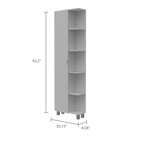 Urano Corner Linen Cabinet, Five External Shelves, Single Door, Four Interior Shelves -White B07091991