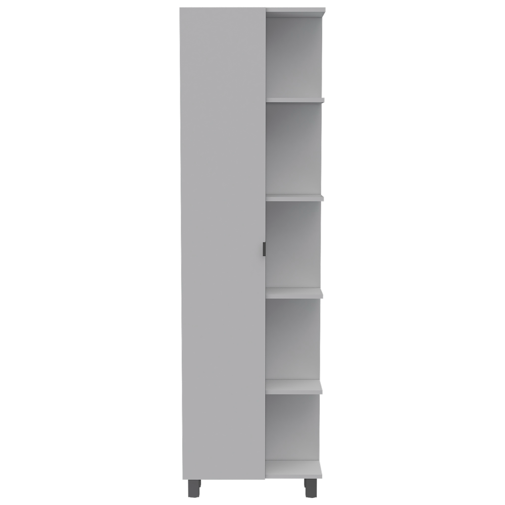 Urano Corner Linen Cabinet, Five External Shelves, Single Door, Four Interior Shelves -White B20091991