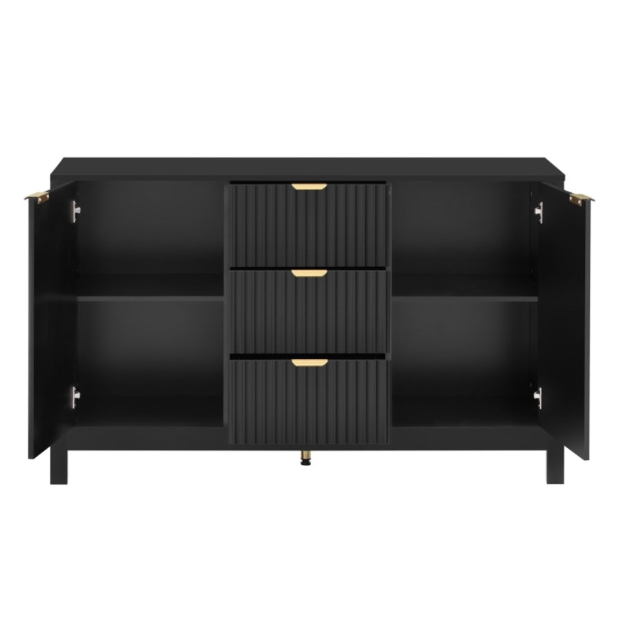 U_STYLE Entryway Cabinet with Wave Design - 3 Adjustable Shelves, 3 Drawers & Soft-Close Doors, N711P269066B