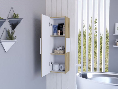 Vanguard Medicine Cabinet, Three Shelves, Single Door Cabinet -White / Light Oak B20092115