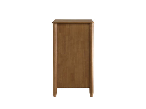 The Vichy 5-Drawer Chest combines practical storage with refined design. Featuring five spacious drawers, it’s perfect for organizing clothing, linens, or household essentials while adding a touch of elegance to your home. The rattan drawer fronts provide natural texture and charm, while the light walnut finish creates a warm, inviting aesthetic. Built with a sturdy solid wood frame and premium manufactured wood panels, this chest is designed for long-lasting use. Compact yet versatile, it’s ideal for bedrooms, living rooms, or entryways. Complete your space with other pieces from the Vichy collection for a stylish, cohesive feel. Dimensions: 31.5W x 17.72D x 43.31H in. Floor clearance: 5.2 in. Drawer dimension: 25.23W x 11.22D x 6.61H in.