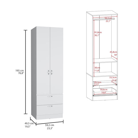 Vico 76" High Armoire Wardrove Closet with 2 Drawers, Double Door Cabinet , One Shelf and Hanging B200P188838