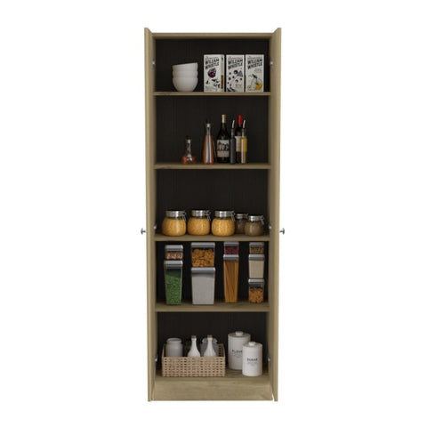 "Forget about spending a long time searching for your cooking supplies because you can't remember where you put them. The Virginia storage Cabinet fits easily into your kitchen, garage, or mudroom without getting in the way or taking up too much space. This spacious two-door cabinet with Five Shelves provides plenty of room for spices, bottles, ingredients, and other kitchen items you may need or use frequently. Its modern design will change your kitchen's atmosphere, making it feel much more fresh, spacious and organized.