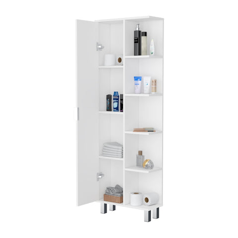 Introducing our bathroom cabinet, meticulously crafted to elevate your bathroom organization with its spacious design and elegant white finish. With dual sections featuring multiple shelves on both sides, this cabinet offers generous storage for towels, toiletries, and more, ensuring your essentials are always at hand while maintaining a sophisticated aesthetic.