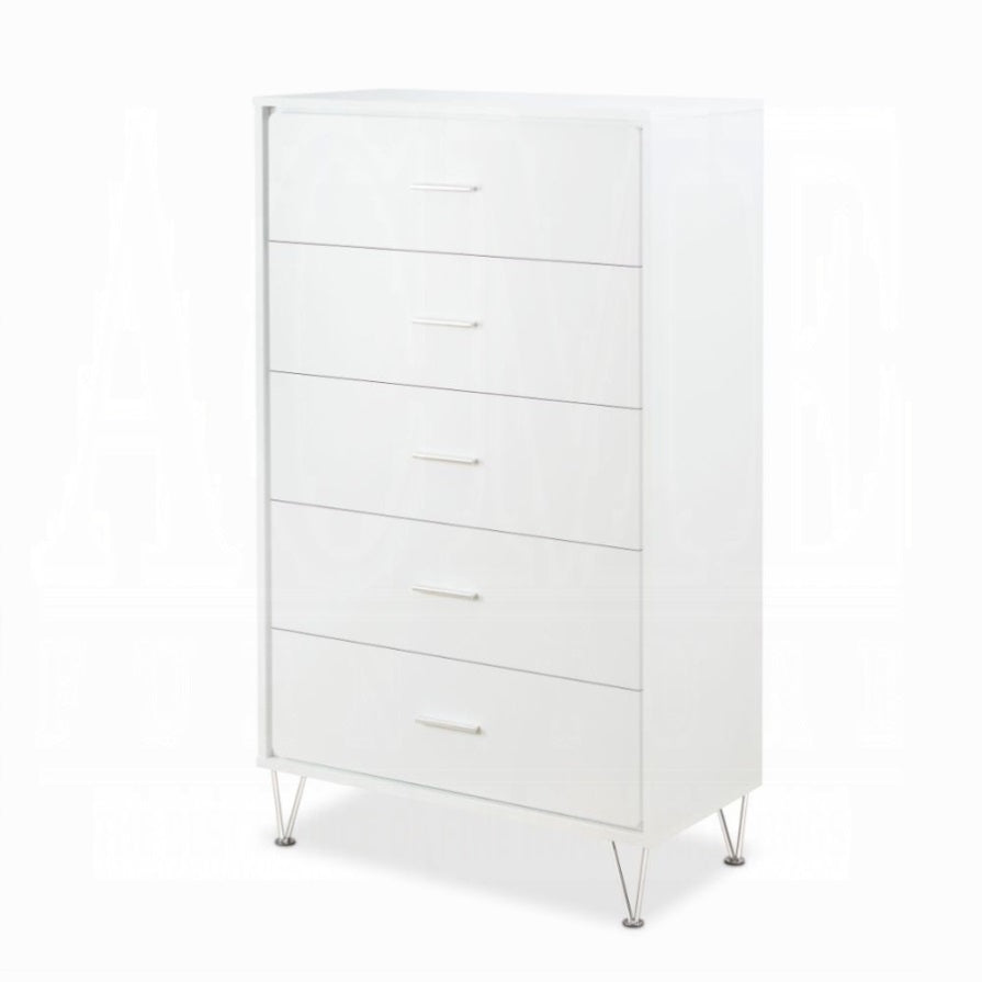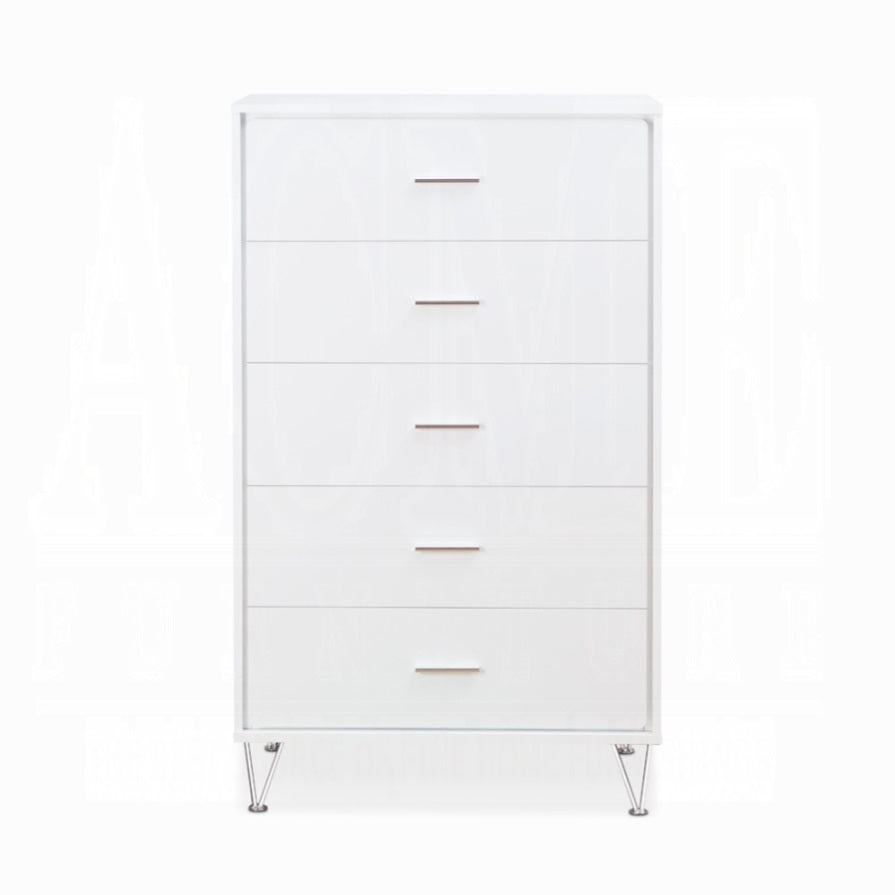 White 5-Drawer Chest with Single Handles B062P209028