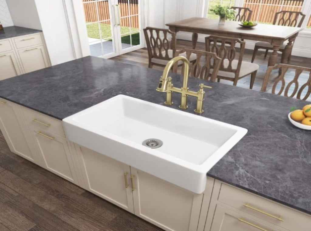 cUPC certified. This apron front farmhouse sink can be installed on both sides.