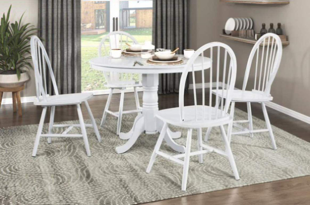 At home in a casual country farmhouse or suburban breakfast nook, The Shelby Collection’s traditional profile will complete the look you desire for your home. The traditional Windsor back chair lends a classic accent, making it the perfect addition to your casual dining space. A white finish is utilized its hue a crisp palette perfect to complement your home's decor. PRODUCT DIMENSIONS: Overall Dimension: 20" x 19" x 37"H Seat Width: 18.5" Seat Depth: 16" Seat Height: 18" Listing Includes: Set of 2 Side Chair Only. Table : Not included Simple Assembly Require.