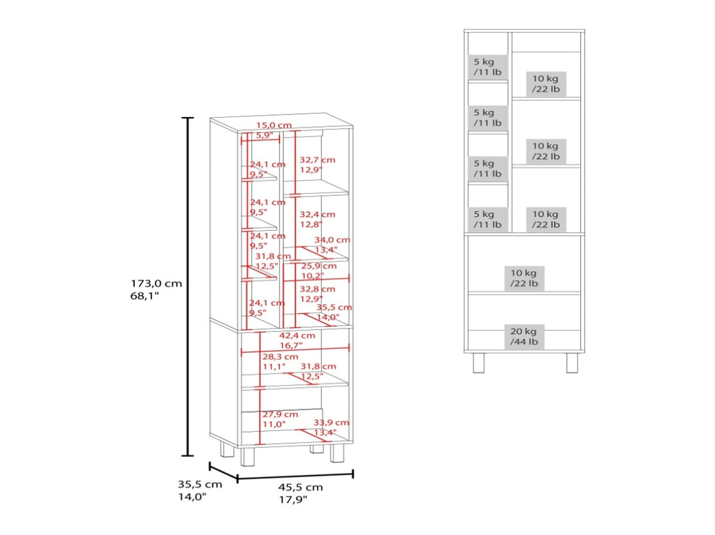 34.65 x 45.47 x 172.97 (W x D/L x H) cm