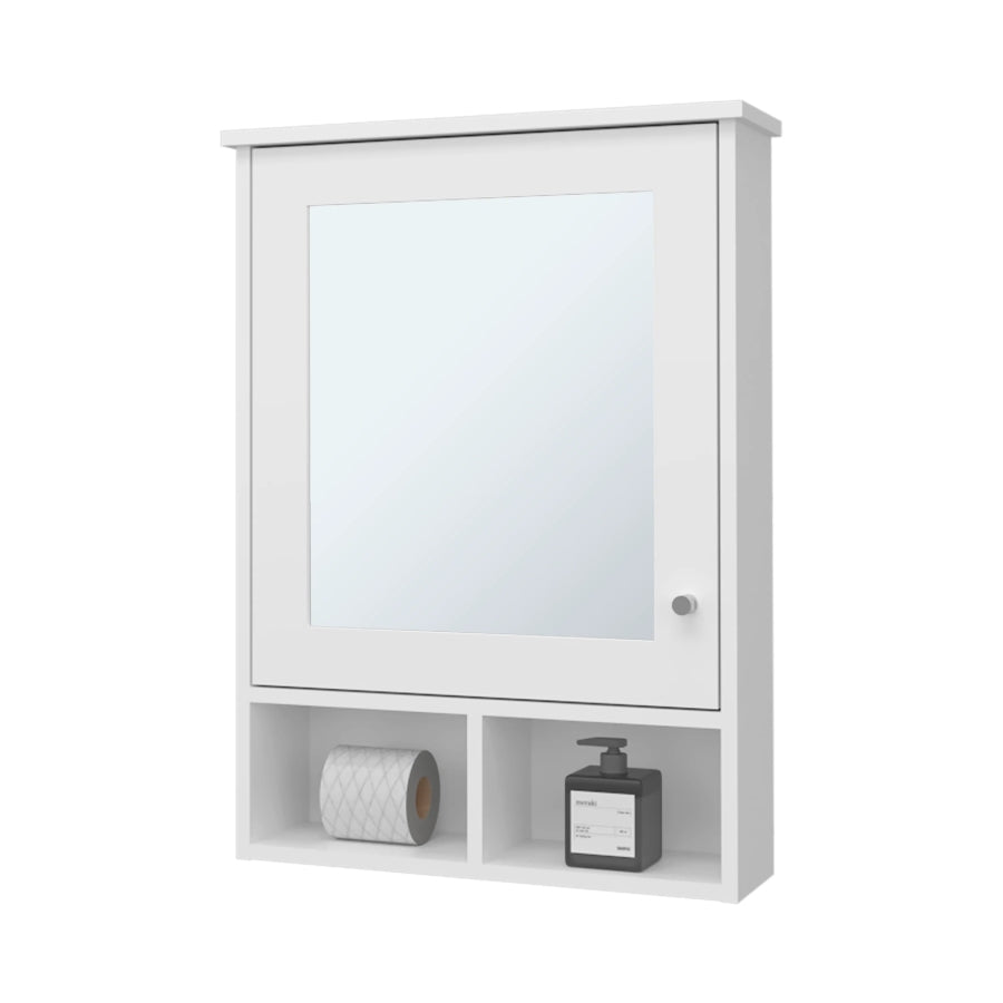 This stylish bathroom cabinet is perfect for storing medications, skincare, and other essentials, with a mirror on the door that enhances practicality while creating the illusion of a larger, brighter space. The elegant white finish enhances its modern aesthetic, making it a versatile addition that seamlessly complements any bathroom decor.