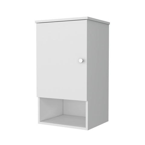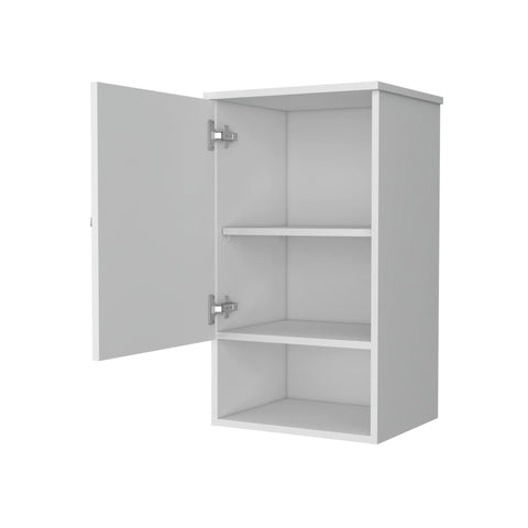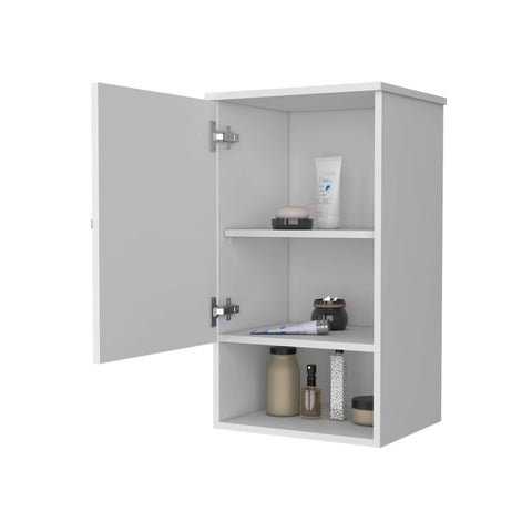 Includes two internal shelves behind the door for private storage and one open shelf for easy access to frequently used items