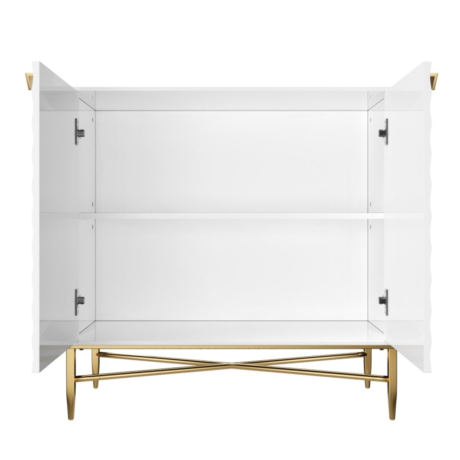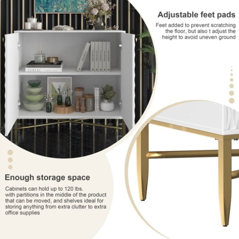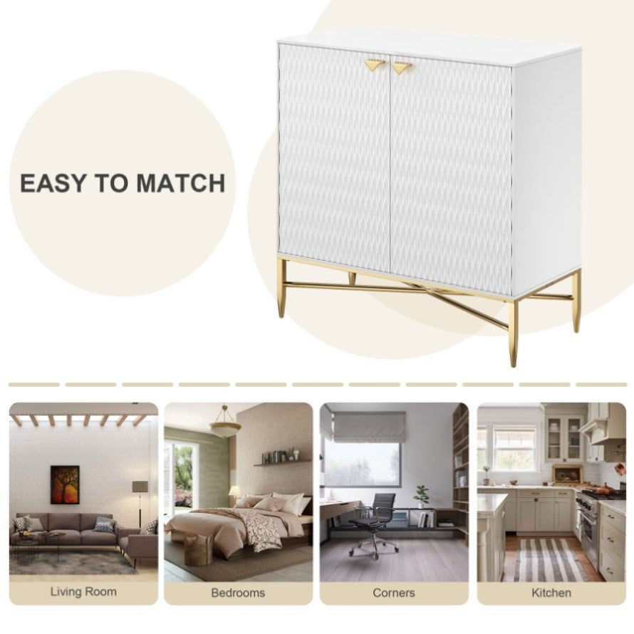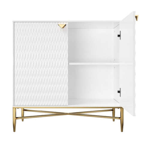 White Modern 2-Door Locker Accent Cabinet with Tapered Metal Feet T3609P333096