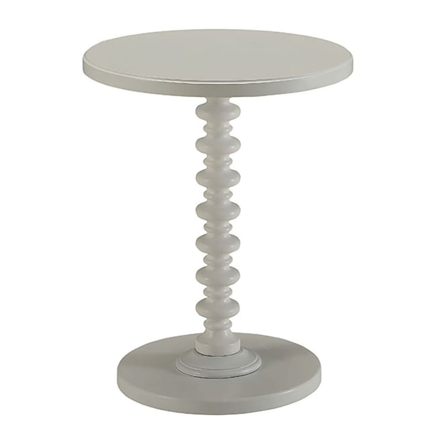 This table features a round wooden top and base with no apron, providing a simple and sleek look. Its space-saving design is perfect for tight areas, offering a convenient surface for drinks, books, or decorative items, while the wooden turned pedestal adds visual interest and classic charm.