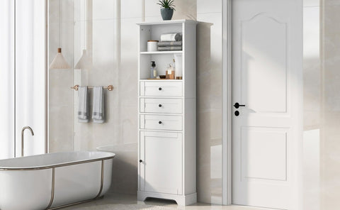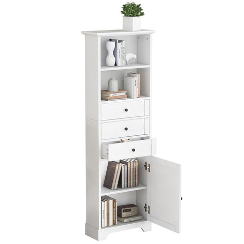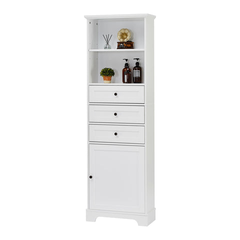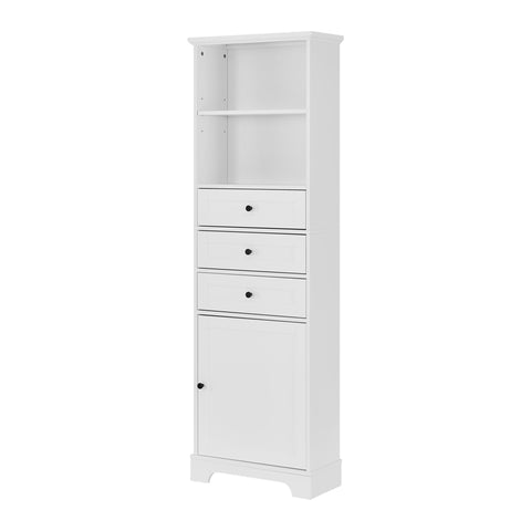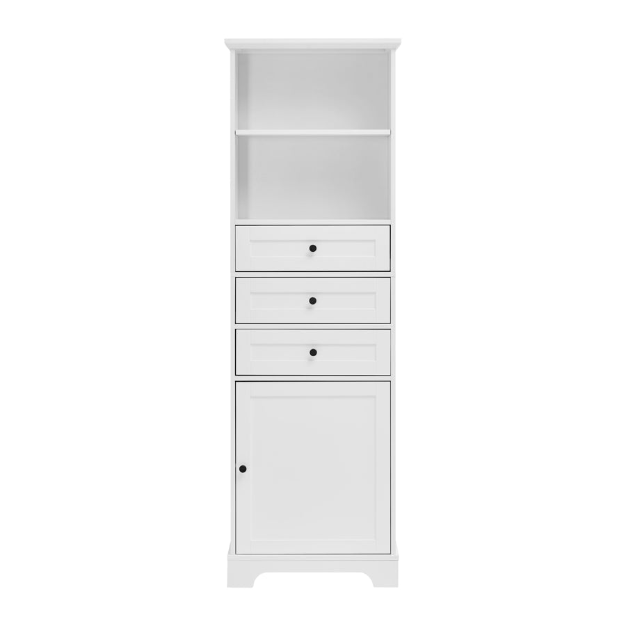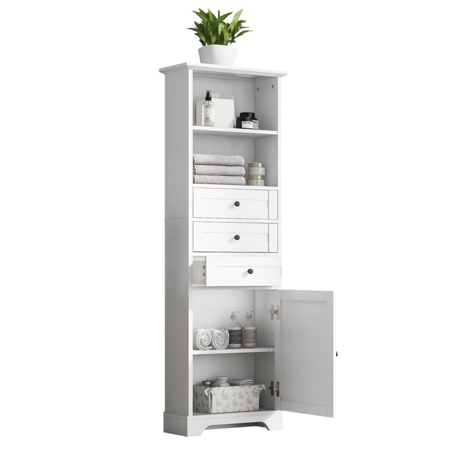 White Tall Storage Cabinet with 3 Drawers and Adjustable Shelves for Bathroom, Kitchen and Living 93869259