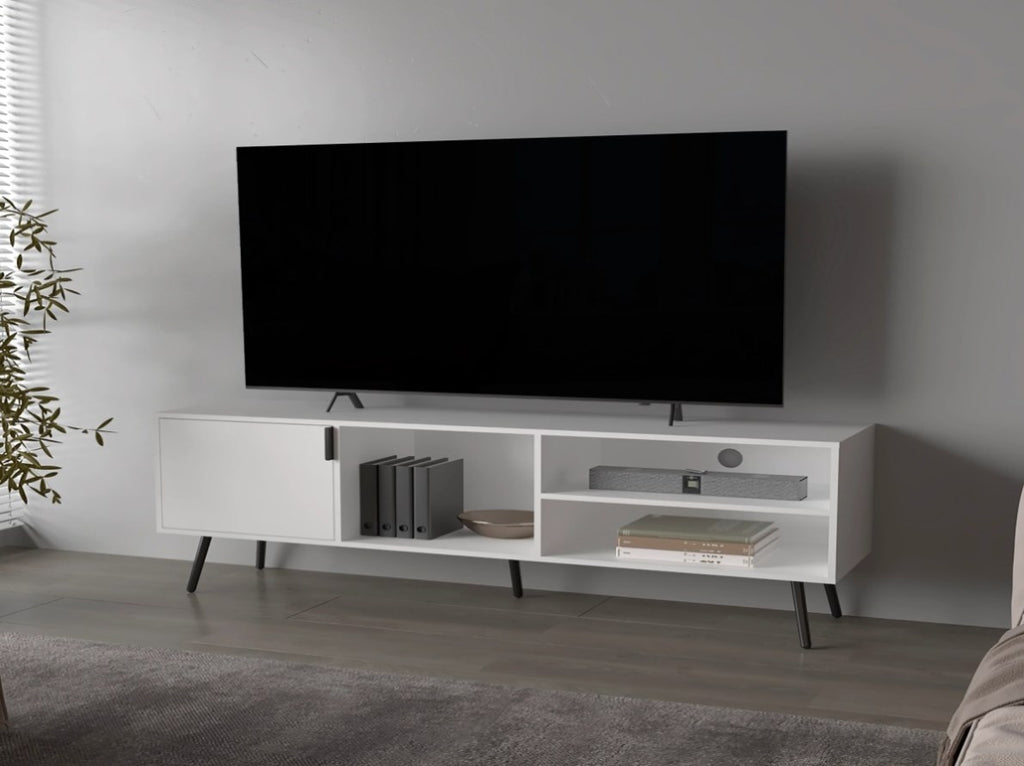 White TV Stand Multistorage with a Door and Open Storage B062P290224