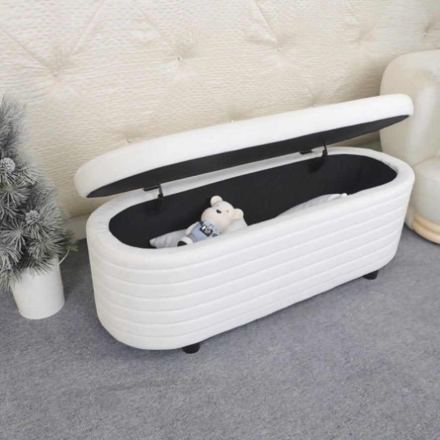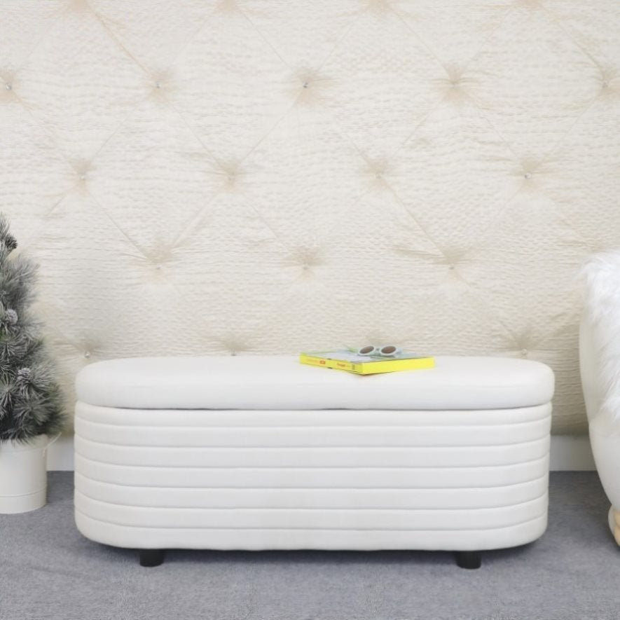 White Velvet, Modern Upholstered Storage Bench, End Of Bed Stool, For Living Room, Entryway, Bedroom 73346557