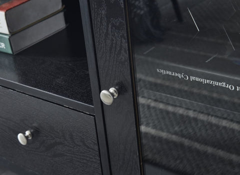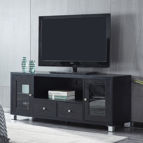 Wood TV stand Media Console with Storage Cabinet for Living Room, Bedroom, Black- Wood Grain Finish W965P156184