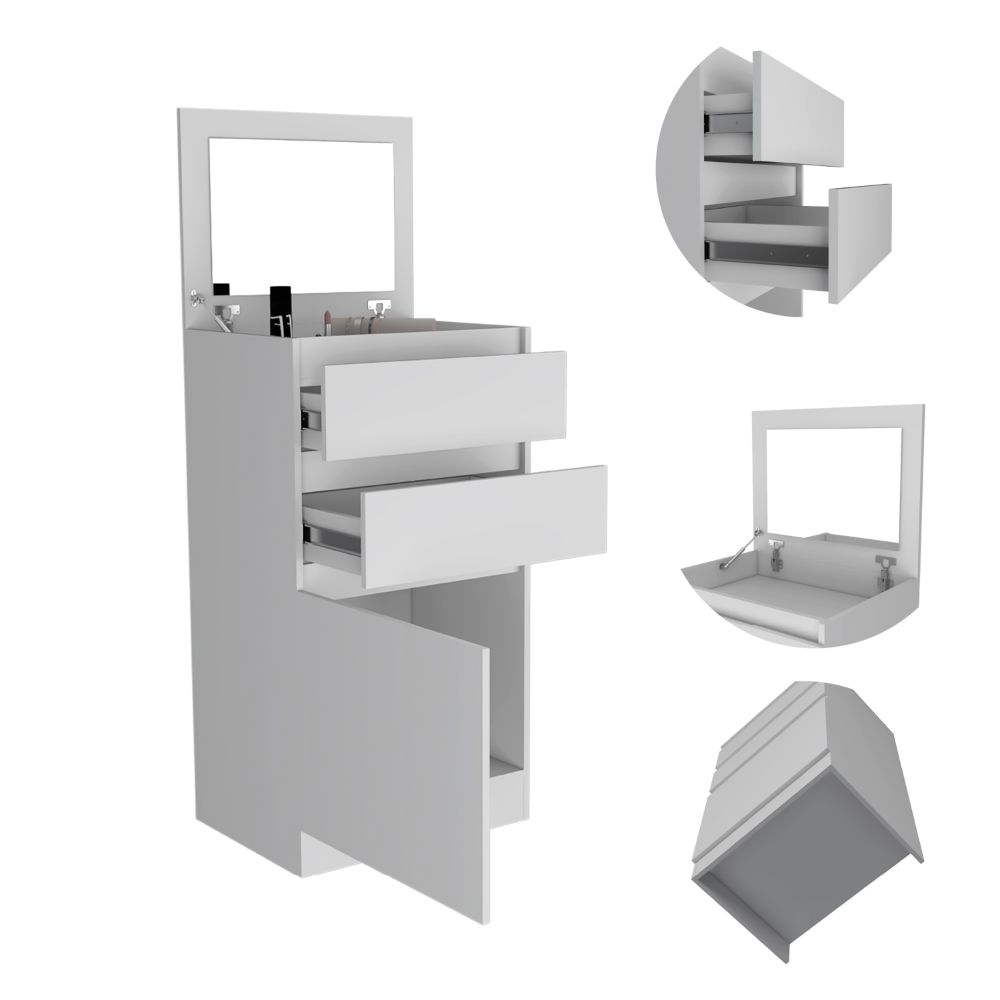 Kamelot Dresser With Jewelry Box, Single Door Cabinet, Mirror, Two Drawers -White B20091920