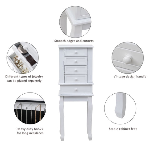 Standing Jewelry Armoire with Mirror, 5 Drawers & 14 Necklace Hooks, Jewelry Cabinet Chest with 96096796