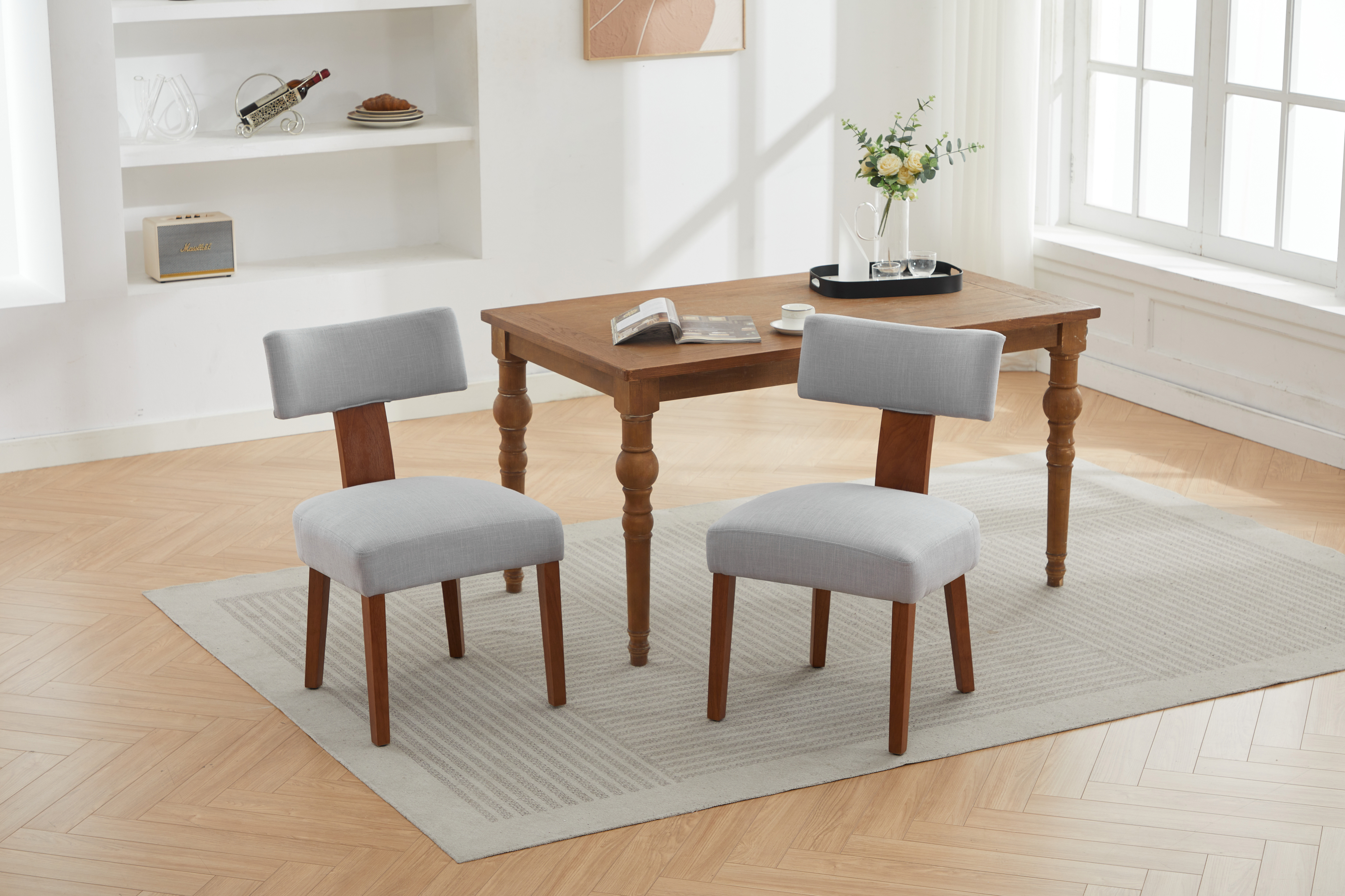 064-Set of 2 Linen Fabric Modern Armless Dining Chairs With Curved backrest and Solid Wooden Legs 42256414