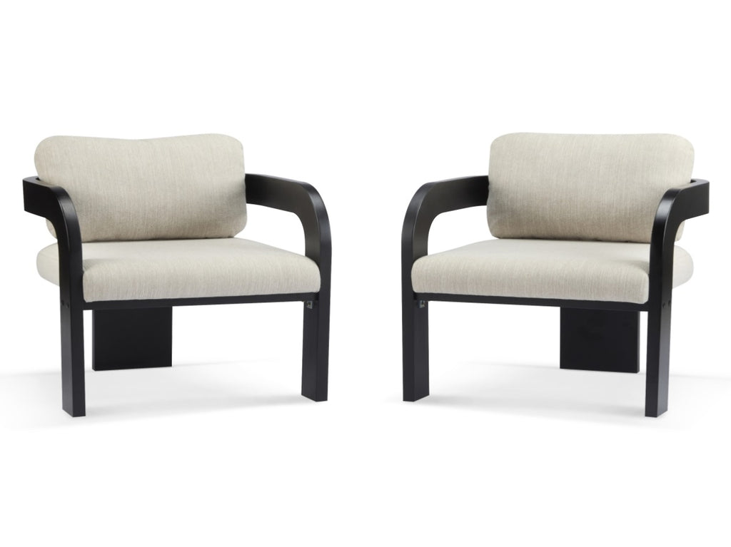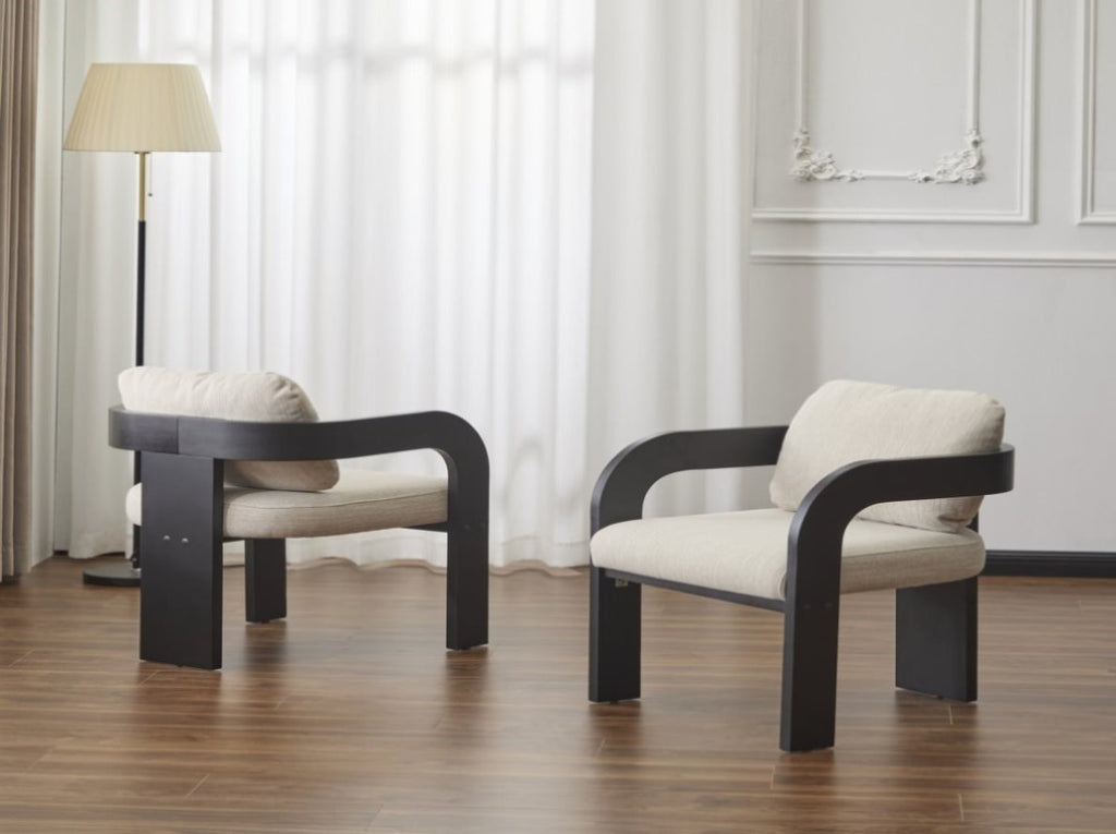 Color and Material: Black Rubber Wood Frame + Beige Fabric Cushion