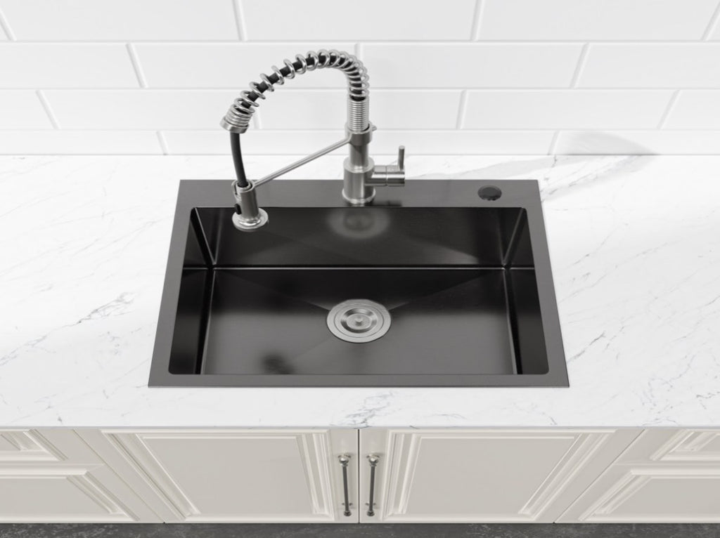 "Color Black Material ‎Stainless Steel Size ‎23”x19”x10”(Sink Only) Style ‎Modern Installation Type ‎Countertop Finish Type ‎Satin Shape ‎Rectangular Drain Type ‎Lift and Turn Net Weight ‎7.1kg Finish ‎Satin Item Package Quantity ‎1 Batteries Included ‎No Batteries Required ‎No"