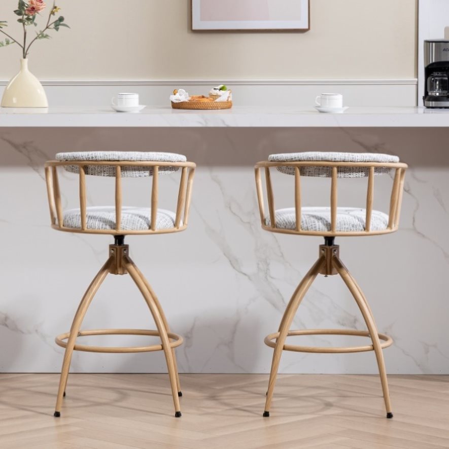 26'' Swivel Counter Height Bar Stool, Set of 2- Fabric Seat with water Transfer Printed Metal Frame, W2215P248058