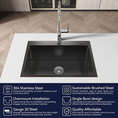 HANDCRAFTED KITCHEN SINKS: Features with HANDMADE craftsmanship, made of 18-gauge, 304-grade brushed stainless steel, the thickness is uniform and the texture is better. It will not cause the sink to be too thin like stretched sinks. Longer service life. A brushed satin finish tends to hide water spots. The flawless, smooth texture and golden ratio R10 rounded corners make it more aesthetic, and functional.