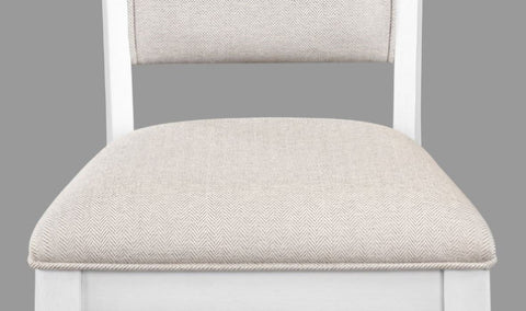 Description :- This counter-height dining chair is upholstered in a cream fabric and finished in a white color. This chair is designed to be used at a counter-height table, providing comfortable seating while still allowing plenty of leg room. The gorgeous dining chair features a sturdy frame and is designed to be durable and long-lasting. This dining chair is perfect for any kitchen or dining space, adding both function and style.