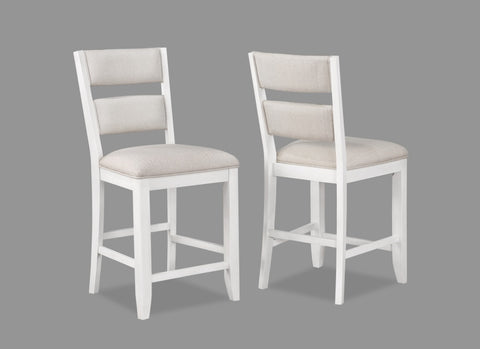 2pc Set White Farmhouse Style Ladder Back Counter Height Side Chair Stool Cream Color Upholstered B011135073