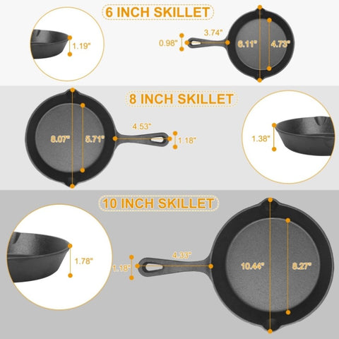 3 Skillet Bundle 6 inches and 8 inches with 10 inch Set of 3 Cast Iron Frying Pans Non-Stick Oven 45468273
