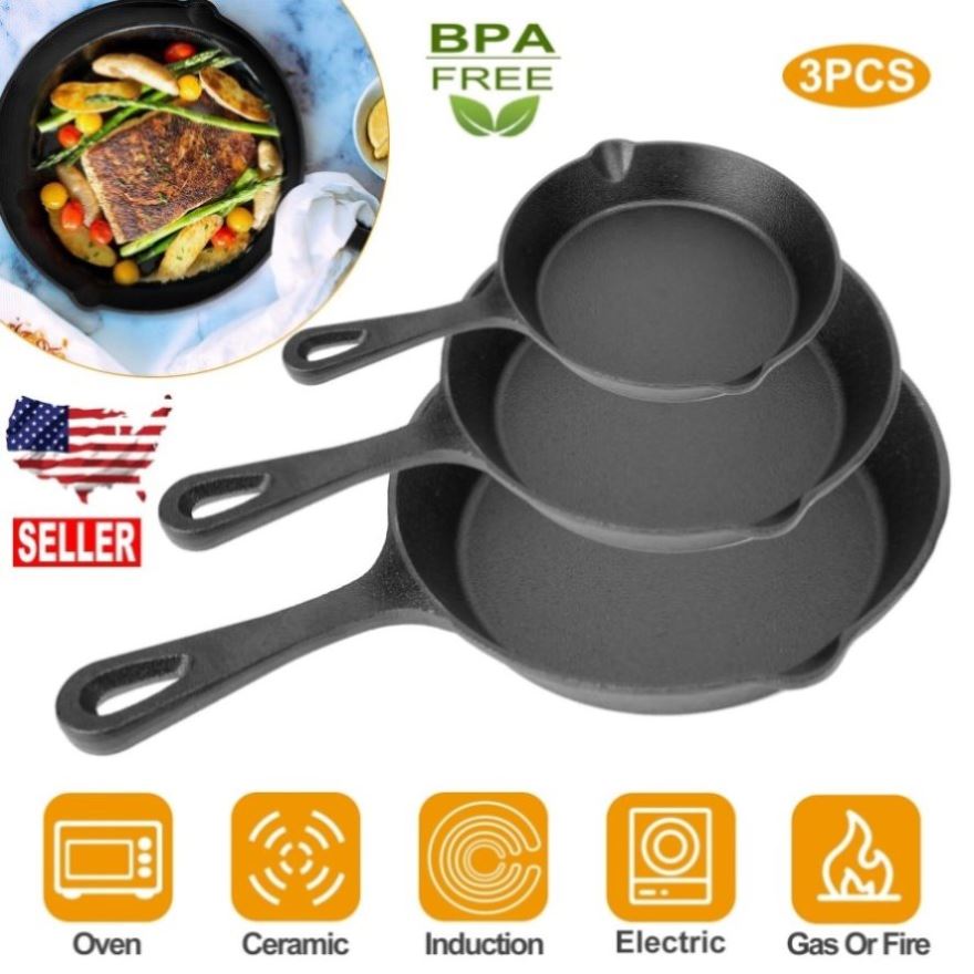 【Safe & Healthy】- Cast-iron skillets have an added advantage over the regular non-sticky pans. You can avoid the harmful effects that are found in regular non-stick pans.