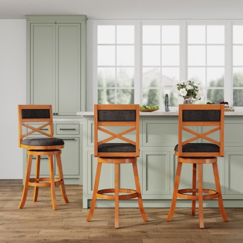 30" Bar Height X-Back Swivel Stool, Natural, Charcoal Fabric