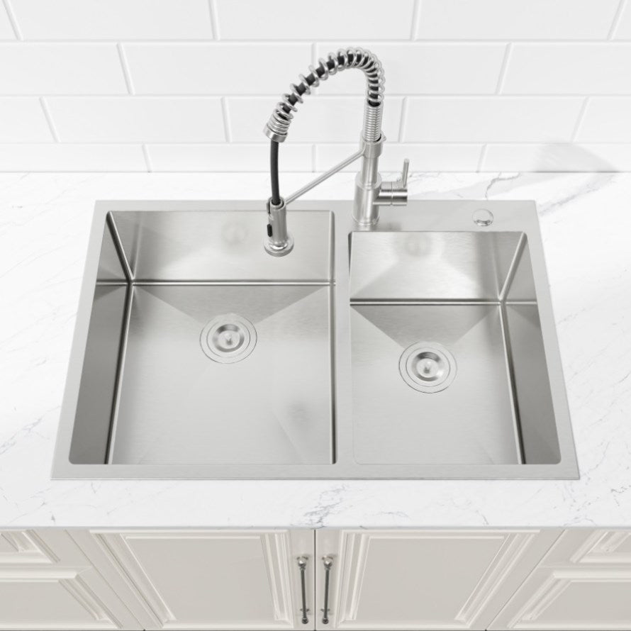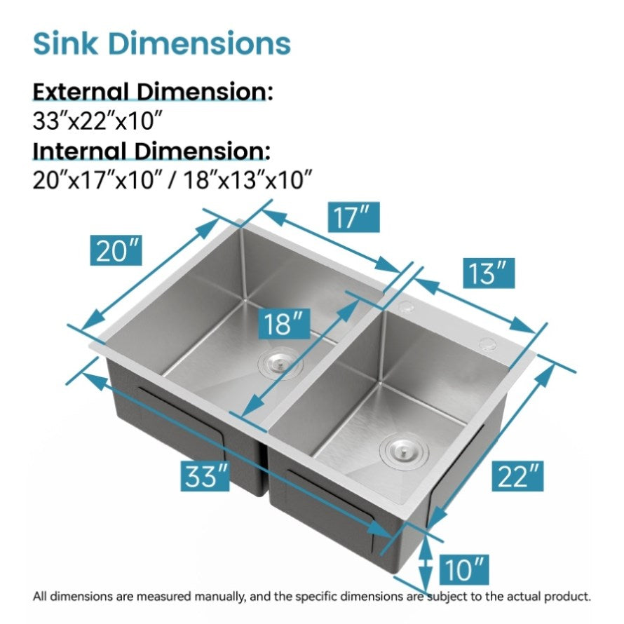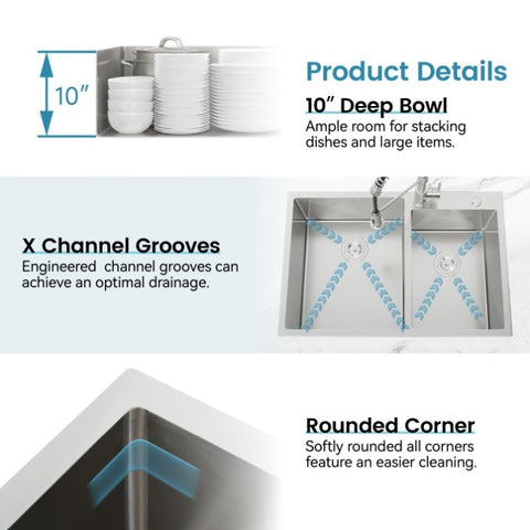 Double Bowl Design: Enjoy the flexibility of double bowls — the left one for big pots and the right one for quick rinses. More tasks at one time.