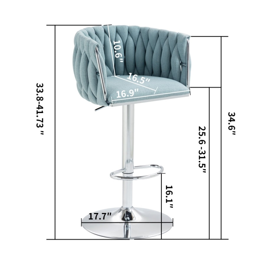 The bar stool is made of sliver metal and fabric, woven to create a very eye-catching design. Perfect for restaurants, kitchens, cafes, offices, bars, exhibitions, or any other decor theme, it fits your space and your home more seamlessly so you can create a fun and original atmosphere.