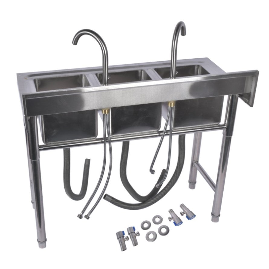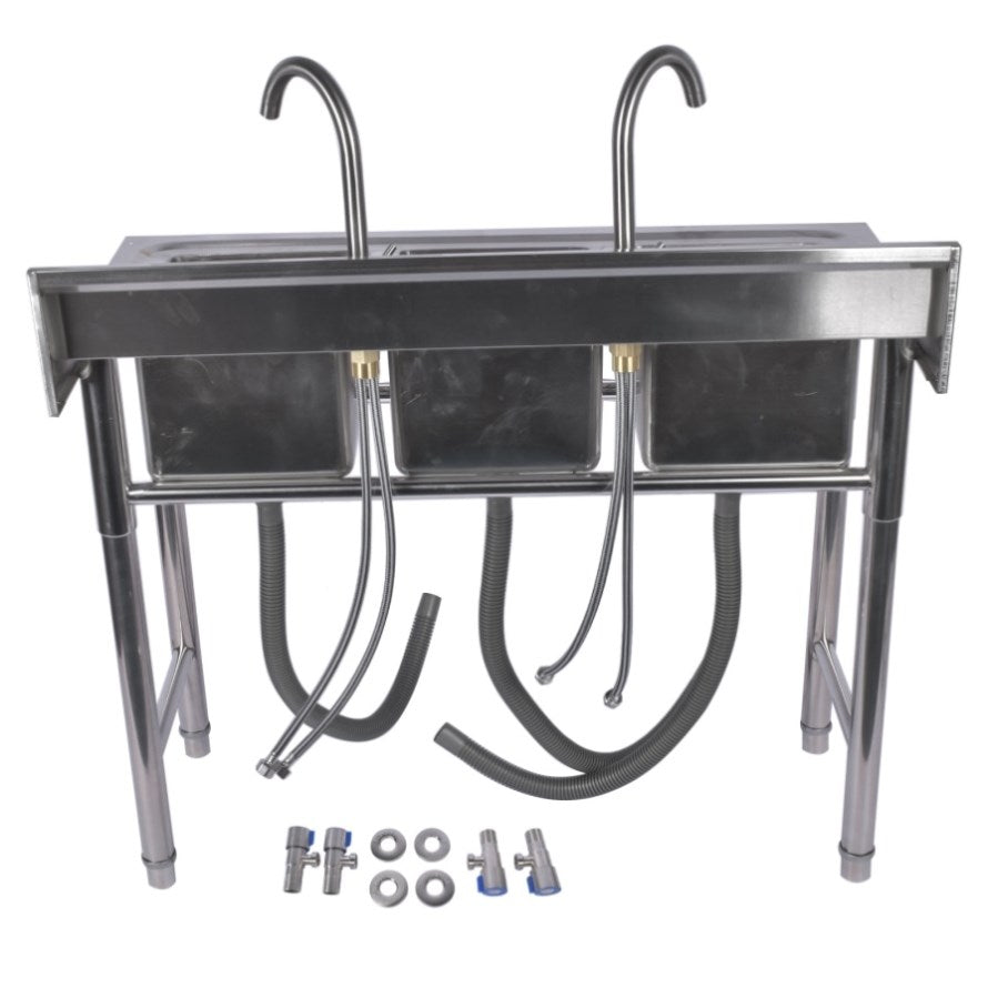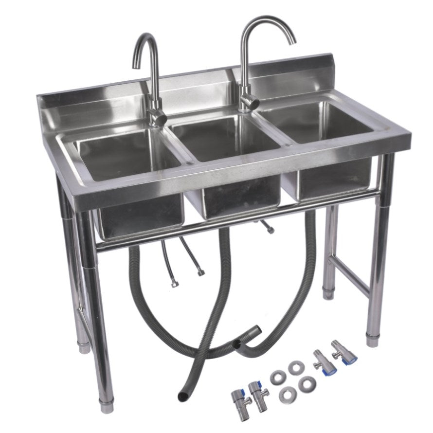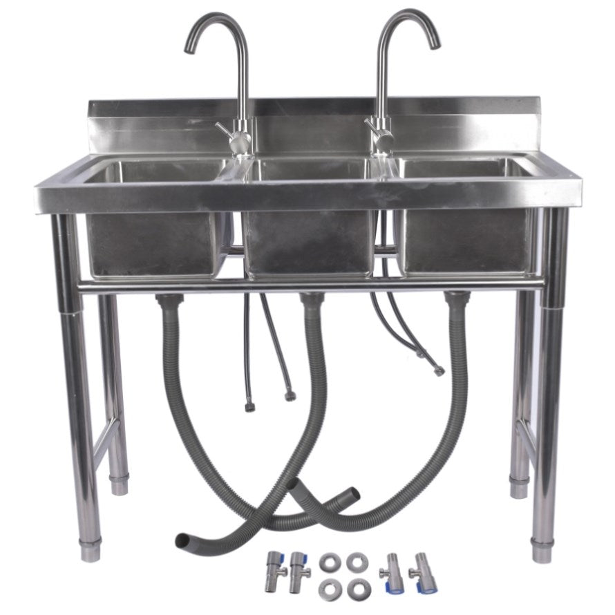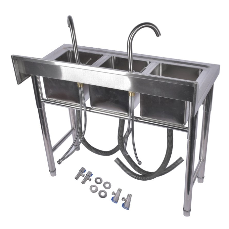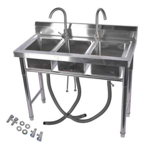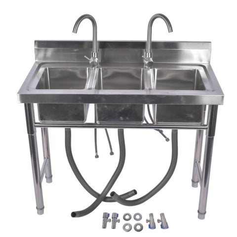 39.3 Stainless Steel Commercial Kitchen Sink Outdoor Sink with 2 Inserts, 3 Slots for Restaurant 99584050