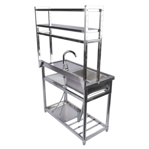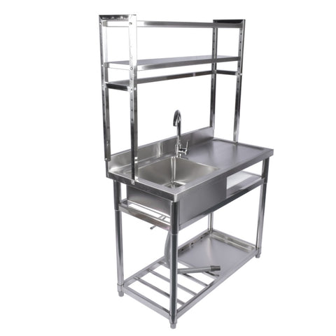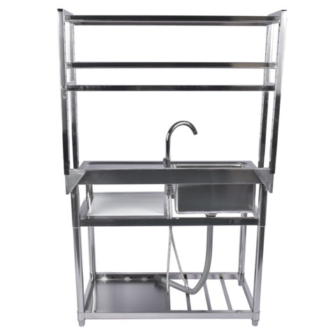39.4in Stainless Steel Utility Sink Set, Single Bowl Commercial Sink w/ Shelves Single Bowl Sink for 91301593