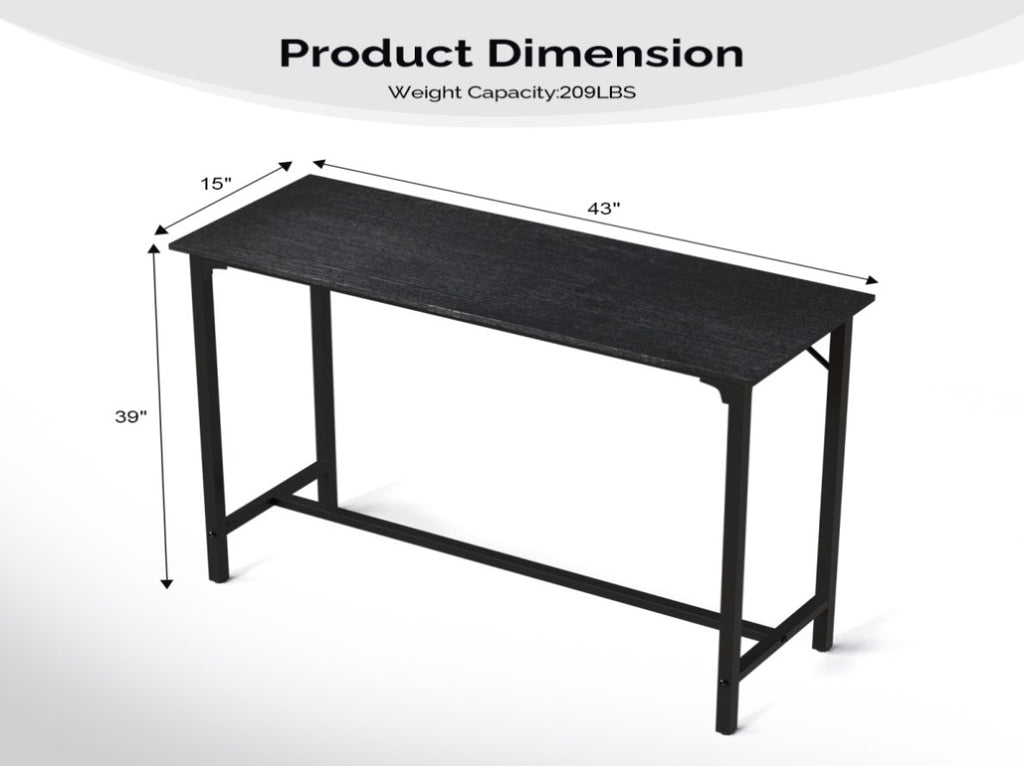 43-Inch Bar Table - 209 lbs Capacity Pub Height Table with Durable MDF Top & Metal Frame, 68111269
