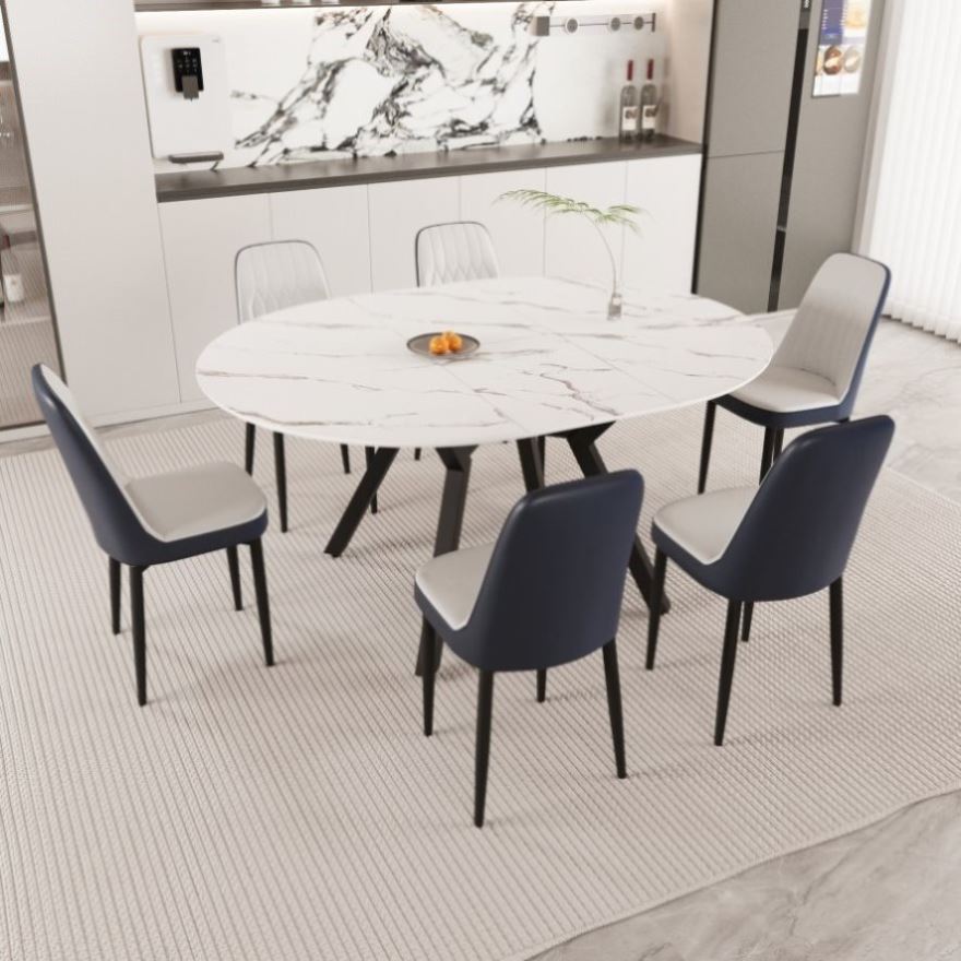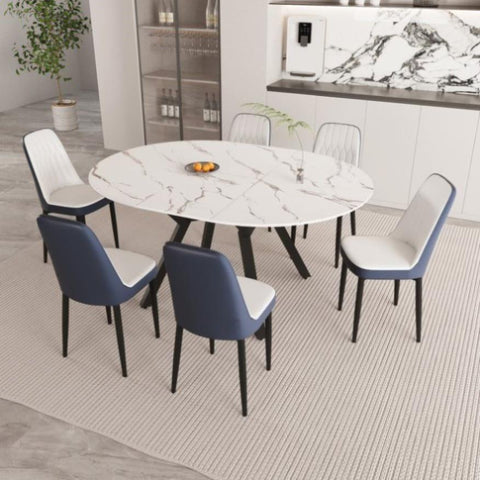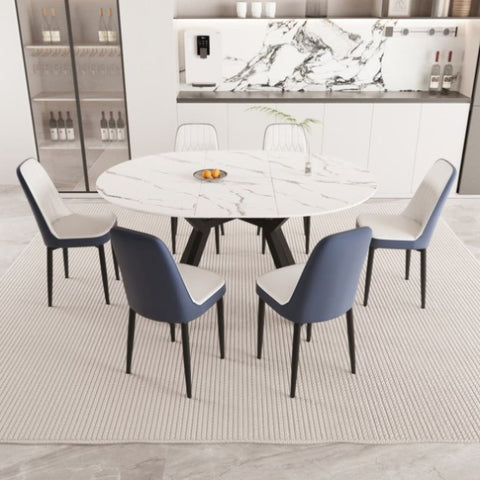 47-63" expandable circular dining tables , equipped with 6 PU fabric thick cushioned dining chairs 28870621