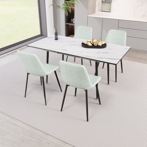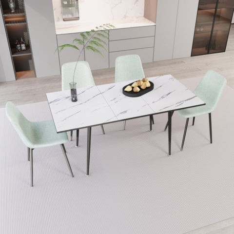 • 2.Modern industrial design dining table: The dining table is designed with marble supernatural patterns, and the black metal base is more elegant and fashionable.