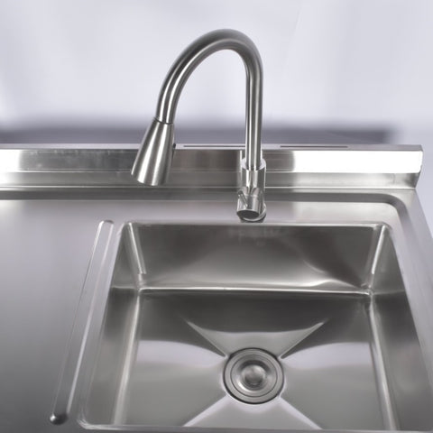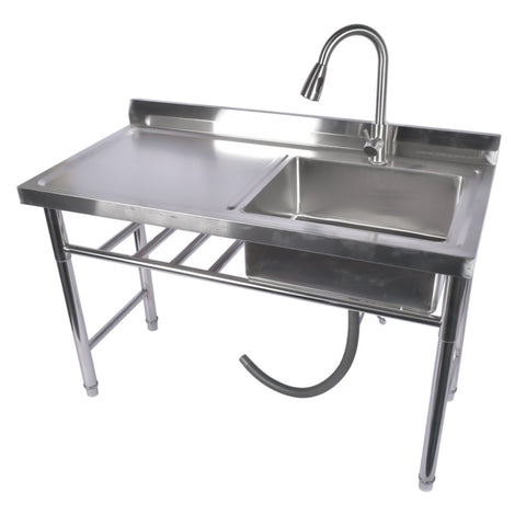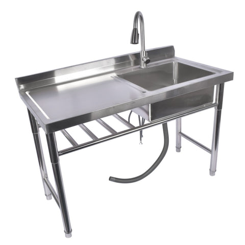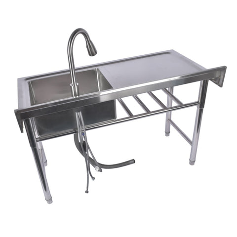 ▲FREESTANDING COMMERCIAL SINKS: stainless steel sinks with hot and cold water inlet pipes, gooseneck faucets with 360 degree swivel, pull-out faucets, feature washbasins, spacious drains and storage shelves. Suitable for any commercial premises.
