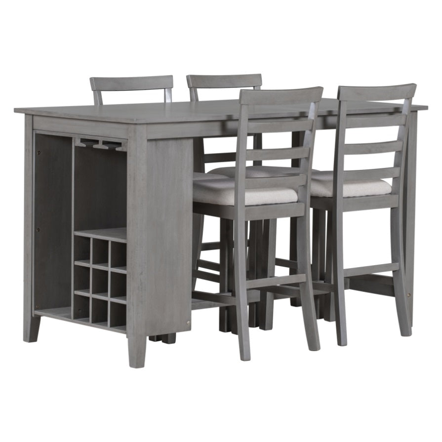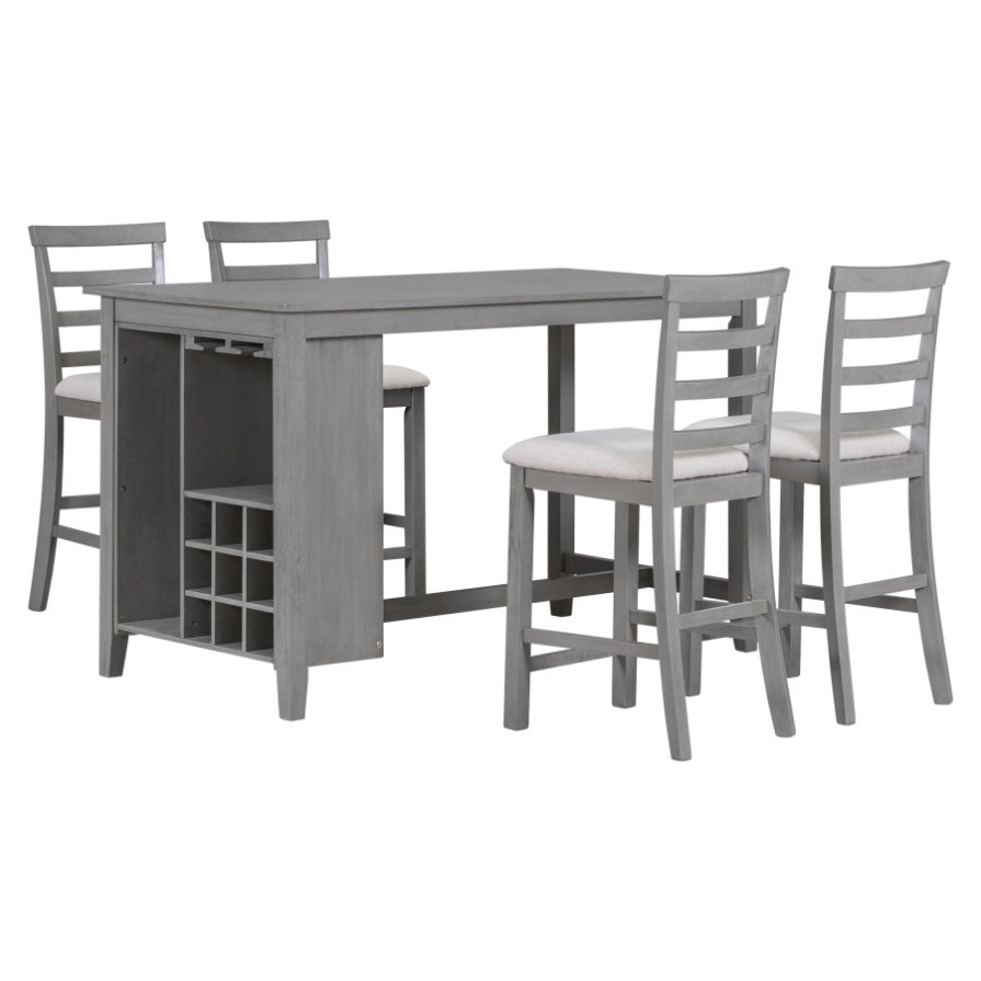 5-Piece Multi-Functional Rubber Wood Counter Height Dining Set with Padded Chairs and Integrated 9 29525346