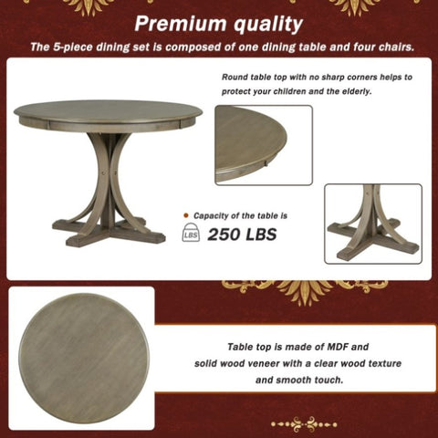 5-Piece Retro Round Dining Table Set with Curved Trestle Style Table Legs and 4 Upholstered Chairs 22968262