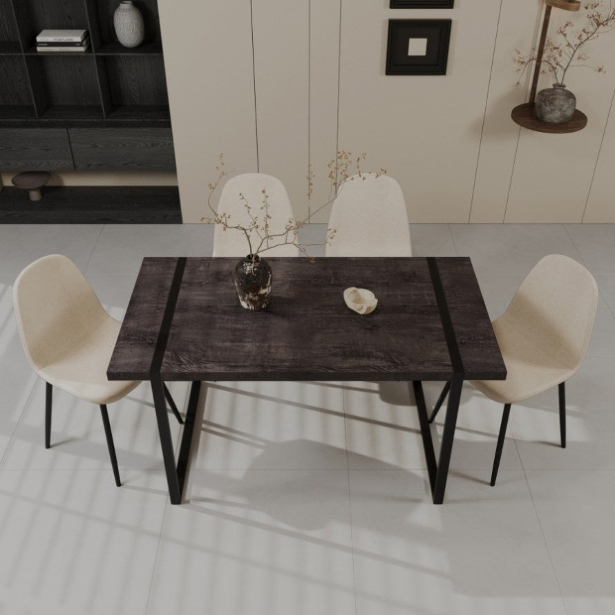 59" MDF black wooden table and modern chair set of 4 pieces, medieval wooden kitchen 25765946