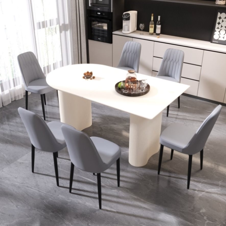 - 8.7 sets of tables and chairs: a table that can accommodate 4-8 guests for gatherings and 6 ergonomic artificial leather modern luxury style dining chairs, creating a fashionable focus for you in the dining area.