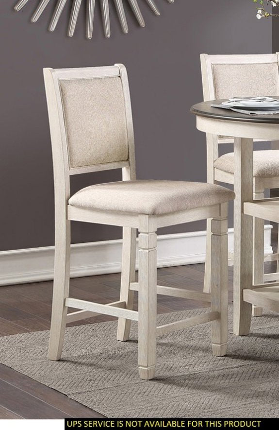 Antique White Finish Wooden Counter Height Chairs 2pcs Set Textured Fabric Upholstered Dining Chairs B01155794