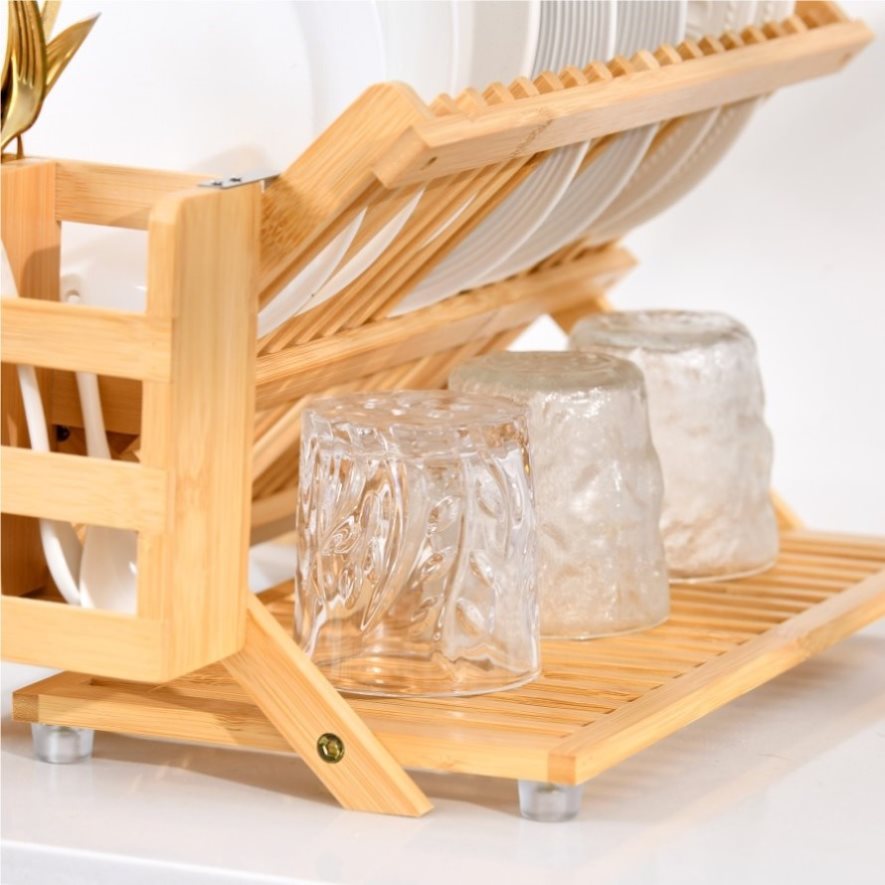 ECO-FRIENDLY BAMBOO: Made from sturdy, renewable bamboo, this dish rack not only looks chic but also supports an eco-conscious lifestyle by incorporating sustainable materials into your home.