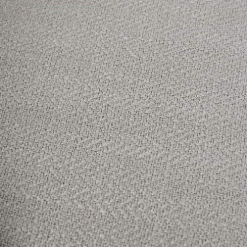 Material: Solid wood and plywood frame, upholstered seat and back and matte silver metal ring footrest Leg Material: Solid wood Arm Material: Solid wood and plywood Cushion or Upholstery Fill Material: Foam Back Fill Material: Foam Wood Finish: Reclaimed grey smooth Metal Finish: Matte silver Fabric Composition: 92% polyester; 8% linen Seat Construction: Sinuous springs