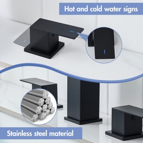 Bathroom Stainless Steel Faucets for Sink 3 Hole Matte Black 8 inch Widespread Bathroom Sink Faucet